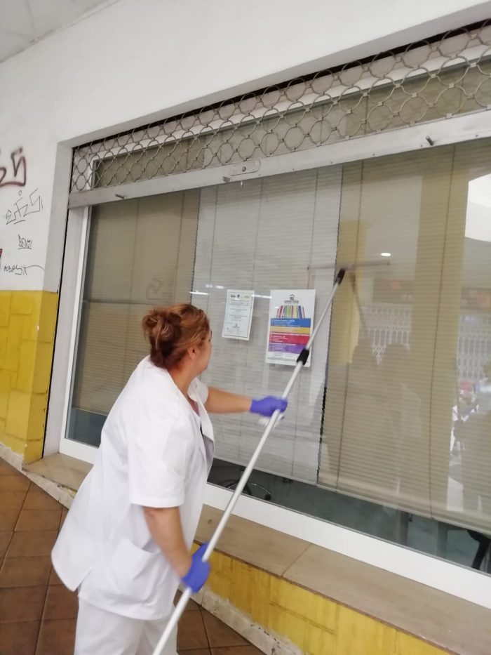 Las personas participantes en el proyecto de formación y empleo que Cáritas desarrolla en el municipio de Alcantarilla han realizado prácticas de limpieza de cristales dentro del aprendizaje práctico que contempla su Pretaller de Auxiliar de Limpieza.