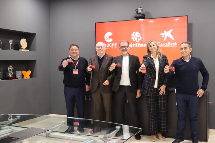 En el acto intervino también Olga García Saz, directora territorial de CaixaBank, entidad que emite la tarjeta solidaria que Caliche promoverá entre sus empleados y colaboradores. Esta tarjeta destina un 0,07% del importe de cada compra a proyectos de Cáritas sin coste añadido para el titular ni necesidad de cambiar de banco.