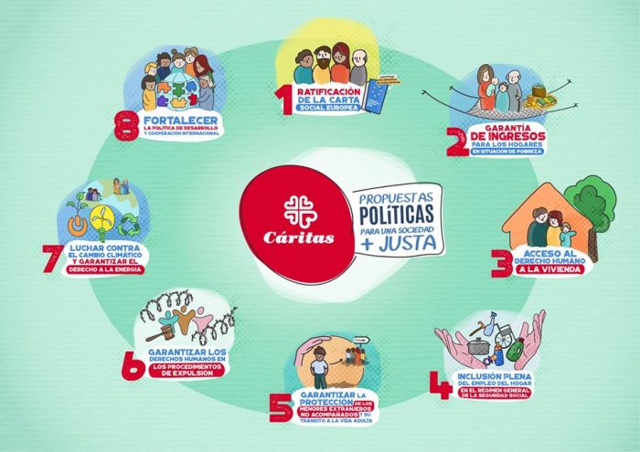 Cáritas hace público su documento de propuestas en el que se ofrecen al conjunto de las fuerzas políticas una serie de medidas prioritarias para proteger la dignidad de cada persona y promover la fraternidad y el bien común, que sirvan para construir una sociedad humana, justa y democrática.